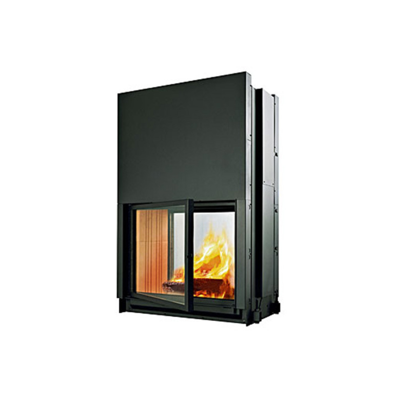 Αυτή η εστία μας επιτρέπει να θαυμάζουμε τη φωτιά από δύο διαφορετικούς χώρους. Το τζάμι παραμένει καθαρό ακόμη και μετά από χρήση μερικών ημερών, οι καταναλώσεις είναι χαμηλές και οι αποδόσεις υψηλές. Η κυκλοφορία του ζεστού αέρα γίνεται μόνο με φυσικό ελκυσμό, με τη χρήση των διαθέσιμων kit για την προώθηση του σε παρακείμενους χώρους με δύο εύκαμπτους σωλήνες.